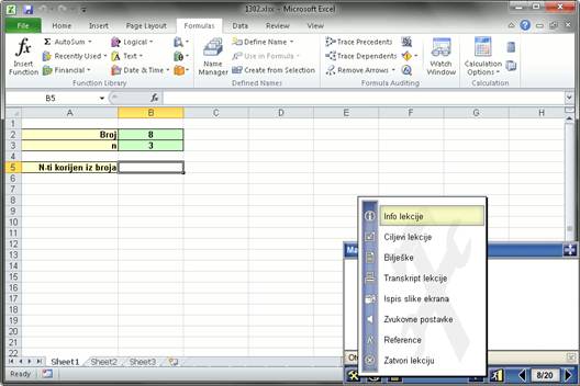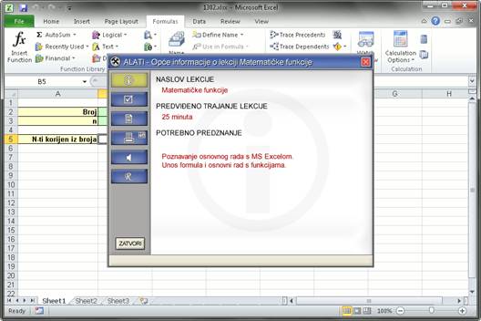 Otvaranjem izbornika s alatima otvara se dodatni prozor s opcijama lekcije:
